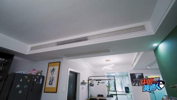 在出风口设置上,也非常有讲究。据郭峰介绍,在餐厅厨房与卧室衔接的活动区上方设计空调侧边送风,正下方回风,客厅与玄关之间上方设计同样侧边送风,正下方回风,这样,机器运行时,既不会直接吹到身上,同时保证空调温控的效果。