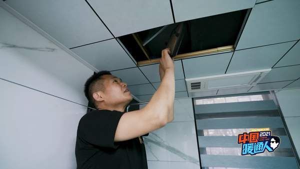 由于杨哥家的房子,没有层高优势,家里的卫生间有做吊顶,考虑到层高、空间及后期检修等等问题,郭峰最终将新风主机安置在卫生间。杨哥家的层高以及卫生间的面积正好足够安置新风主机,并且铝扣板的吊顶就是非常方便的检修口,作为更换滤芯使用。