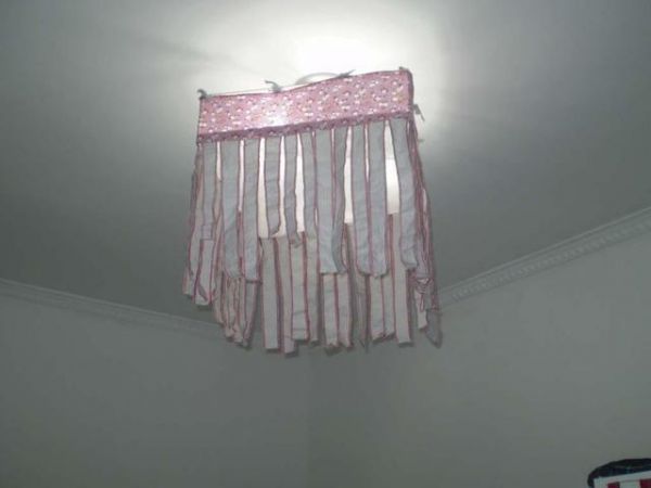 灯上的流苏稍微还好一些,卧室灯流苏变成了布条,加上四四方方的造型,让人不禁会想到出殡队伍中,被高高举起的那个带着穗子的白帆,真的是难免让人产生一些不好的联想,晚上不开灯的时候确实有些吓人。
