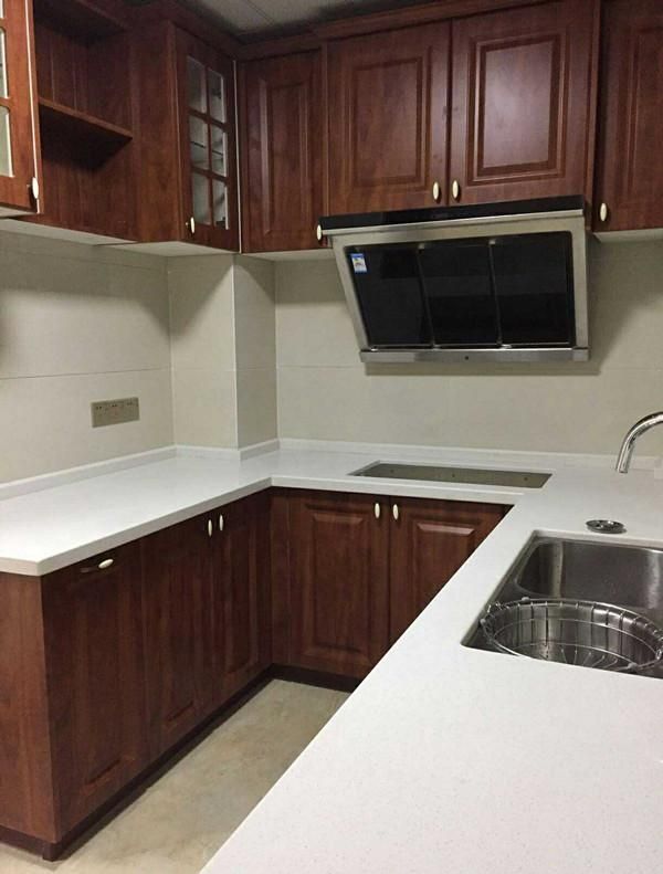 厨房不是特别大,用这种颜色的橱柜显得拥挤。