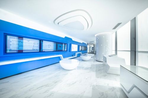 设计有机结合了现代科技和未来国际两种风格,打造极具科技感与创新性的创业空间。企业成果展示区的空间布局灵感来源于城市的生命线--地铁线路,凌厉的线形塑造着空间的秩序与边界,赋予空间简洁利落的气质。