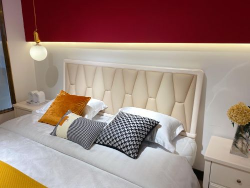 (一)手感:用力按压软靠,如果里面是泡沫则会感受到泡沫破碎散开的感觉,毫无回弹性可言,分辨度极高,而鲁班制床的靠包则是使用进口高密度海绵作软靠填充,其回弹性强,手感软绵。