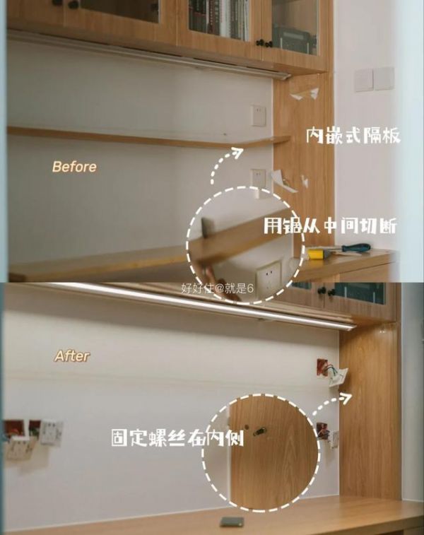1. 桌面前的墙面上原来是一块隔板,由于是内嵌式隔板,只能用锯从中间锯断才拆下来。