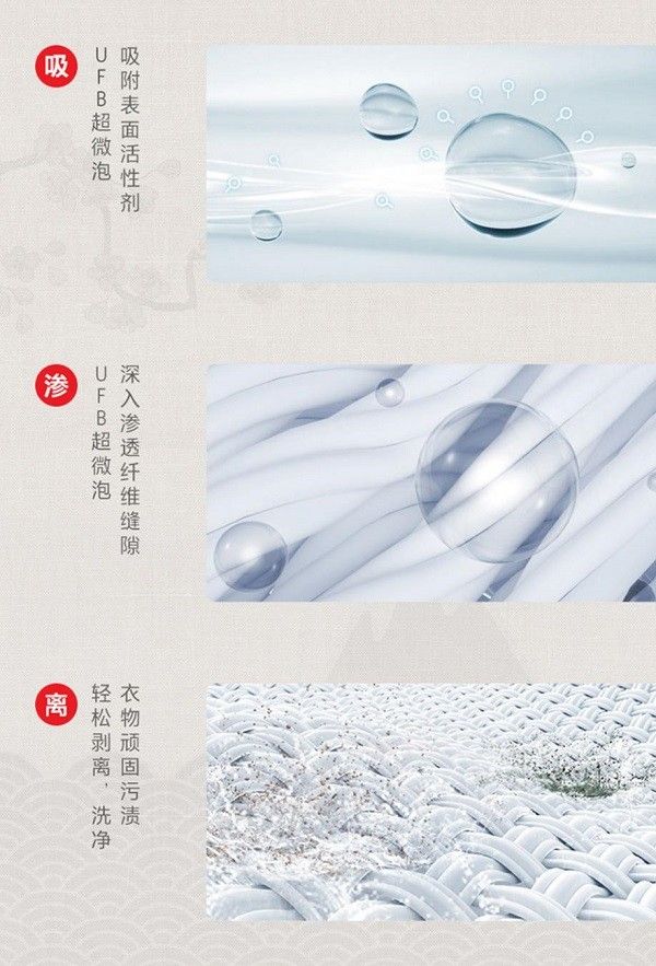 不仅如此,在洗净技术上东芝X9还搭载了东芝自研的UFB超微泡洗净系统。该套系统能够在洗衣时产生亿万UFB超微泡,这些气泡能够提高洗涤剂活性并渗透衣物纤维,大幅度提升东芝X9的洁净效果。而在烘干方面,该机支持热泵低温柔烘,既保证了烘干的速度又解决了高温烘干造成的衣物损伤问题。