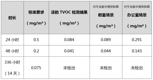 在哮喘&过敏友好® 认证中,通过涂刷后以精密仪器分别在24小时、48小时、336小时(14天)三个时间段,检测空气中的挥发性有机化合物浓度(TVOC)含量,测试应用在教室、办公室等不同的场景中时,室内的空气中挥发性有机化合物的组分、含量,易呼吸过敏友好抗菌耐污多效合一墙面漆完全符合并优于标准限值要求。