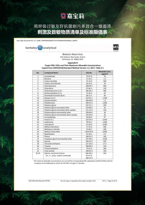 哮喘&过敏友好®认证针对涂料的成分组成设有专项检测,对各项有可能存在过敏性或刺激性化学物质的浓度设置极其严苛的标准要求。经检测,易呼吸过敏友好抗菌耐污多效合一墙面漆中甲醛、乙醛、环氧氯丙烷、二氯乙烯等35种刺激及致敏物质均未检出。另外,该产品在进行抗过敏配方设计时,通过科学控制防腐剂添加量,同样符合哮喘&过敏友好®认证的严格限量要求,在保障产品良好储存性能的同时,用心呵护易敏人群家居健康。