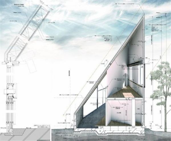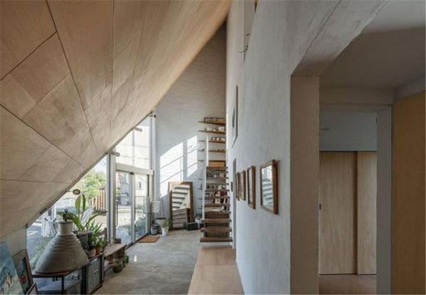 日本的一个建筑事务所给出了他们的方案,整个房子秉承“屋顶即墙面”的设计理念,整个墙面柔和过度到屋顶,通过一体化的设计带来更加舒适的视觉观感,同时也给室内增添了足够的功能区和工作区。