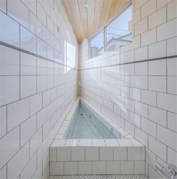 一楼最后的一处区域是家里的小卫生间和浴室,这里就连浴室的浴缸也是三角形的,在这处纯白色的空间里,显得很是奇葩。