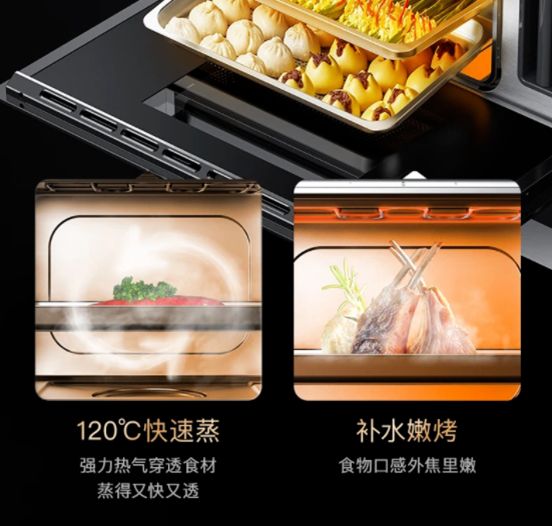 60L的大容量蒸烤箱,可一次包圆六至八人分量的伙食;快蒸嫩烤双专业,通过标准化的火力和时间,让小白也能突破门槛烹饪出大师级水准的美食;它还支持120℃快速蒸、补水式蒸汽烤等八大模式,蒸烤双向互补,释放食物深层香味。
