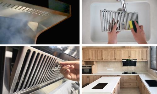最后来验证一下清洗油网的便捷性,此款产品的油网设计是两段式的,并且没有用螺丝固定,拉起中间的拨片向上一提立刻就拆了下来,除了可以放入普通的双槽洗碗池内进行清洗。小编将油网放到洗碗机里试了试,居然也能放进去,由此不难看出设计师的匠心所在。