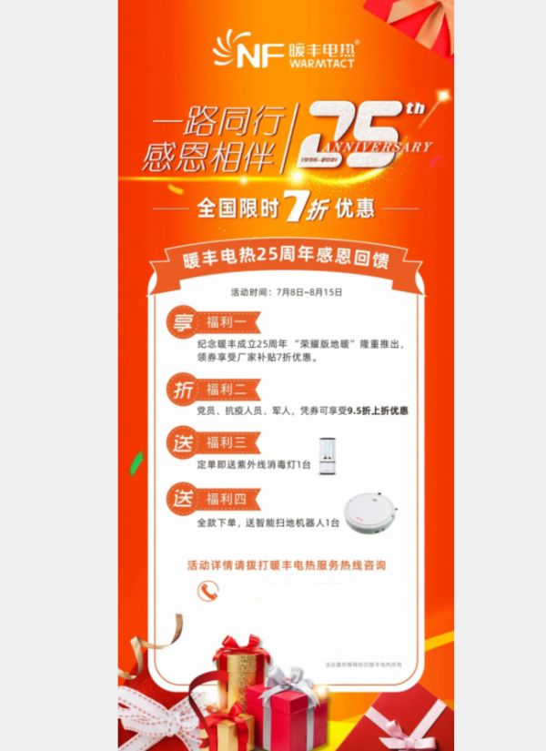 1. 本次优惠活动限定暖丰电热25周年荣耀版地暖;