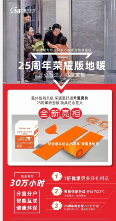 暖丰电热25周年荣耀版地暖重磅发售,限时7折!