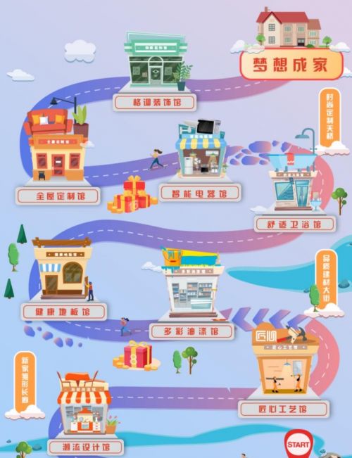 值得一提的是,在“开启捐步之旅”的活动中,百安居匠心独运,以“发展大事记”为线索,结合“一站式”服务优势,灵活运用冠军IP,为用户呈现出一条从“开始筑梦”到“梦想成家”的缤纷之路。捐步活动中,用户抵达终点需经过“新家雏形长廊”、“品质建材大街”和“时尚定制天桥”,每一段旅程都包含家装过程的不同步骤,例如“潮流设计”、“匠心工艺”和“多彩油漆”等。百安居借助这条家装缤纷路,将企业一站式家居购物新零售模式、环保家装绿色家装理念和对公益事业的坚持,展现得淋漓尽致;用户在捐步完成公益行动的过程中,既能直观体会家装装修过程,也能在灵活性与趣味性并存的交互设计中,感受到百安居从1999年到2021年这22年的发展历程和热血青春、为爱拼搏的奥运精神。