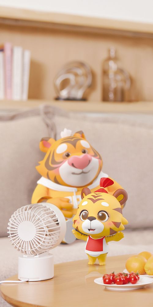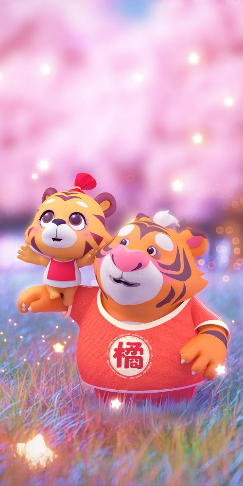 老虎是百兽之王,在大众认知中是凶猛、威武、强大的形象,而虎大橘多了一些猫性,他圆润的体态、女儿奴的中年男子身份,让这个形象增加了一些“憨态”。虎揪揪是她的女儿,因头顶中间的“揪揪辫”而得名,揪揪辫向右歪,使这个小老虎形象更加活泼伶俐。