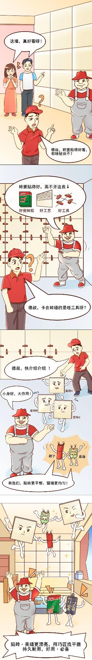 在做找平施工的时候,使用巧匠找平器能有力保证找平卡位时不易断裂、施工结束后容易清理,为瓷砖美缝做好基础。有效解决施工过程中易变形、断裂、不耐磨的3大痛点!