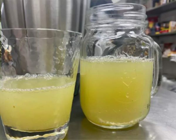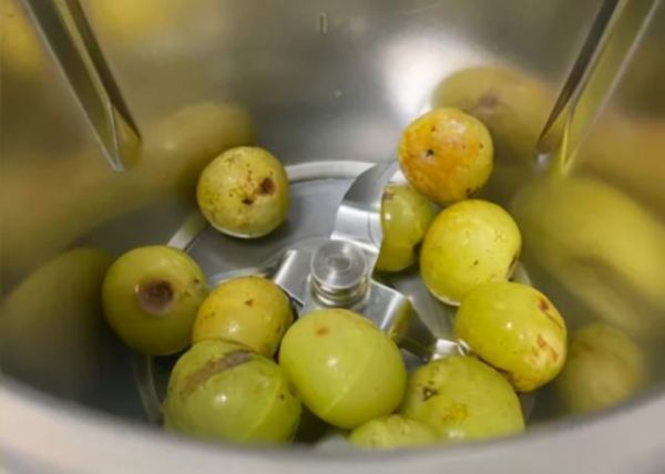 搅拌好的油杆和茶水混合液利用网锅过滤,直接倒出就可以享用了。小美炒菜机的刀头反转将果肉全都打碎了,皮与核还保存完好,真的是三秒微涩、五秒回甘。