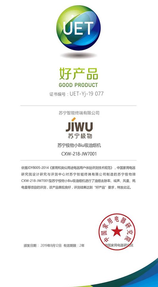 更重要的是,这款燃气灶通过了中国家电研究院测评中心的诸多严格测评,点火时间快、油温升温迅捷、火焰均匀稳定、支持意外熄火保护,既实现了安全快速烹饪,又能够锁住食材营养,一举多得。苏宁极物小Biu燃气灶JZT-JWB301的优秀表现符合A级好产品要求,成功获得了中家院的权威认证。