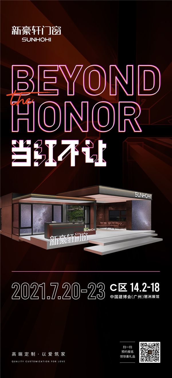 6月28日,企业“线上云直播招商会”会率先起航,新豪轩欢迎广大经销商、渠道商的加入,携手开拓更加广阔的市场,彼此赋能共赢。7月20日-23日,新豪轩门窗2021中国建博会(广州)“当红不让”主题展馆也将亮相广州琶洲展馆C区14.2-18展位,新豪轩门窗诚挚邀请社会各界人士莅临现场品鉴。究竟是颠覆行业,还是定制新生,让我们一起期待!