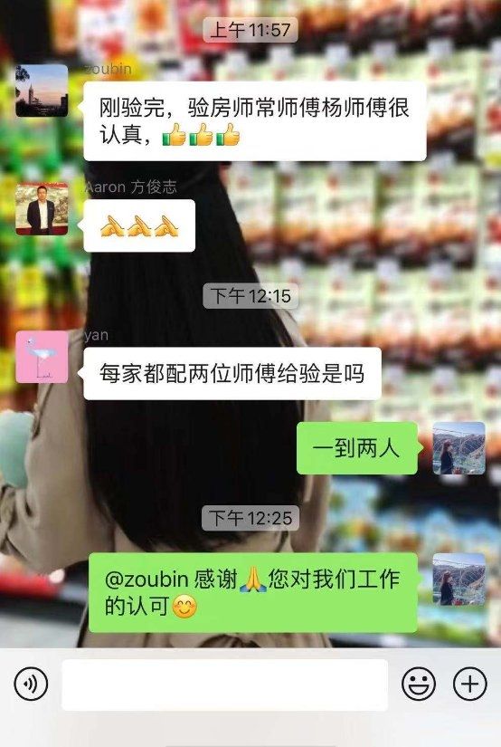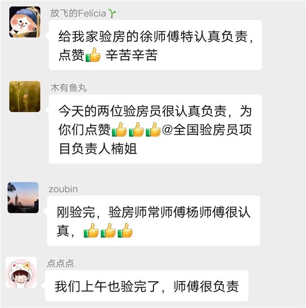 认真的态度、细致的工作、专业的能力、周到的服务,一切的一切都让广大中海寰宇天下熙山府的业主们赞叹不已,他们纷纷竖起了大拇指,并通过微信等方式向质量万里行验房员们表达了感激。