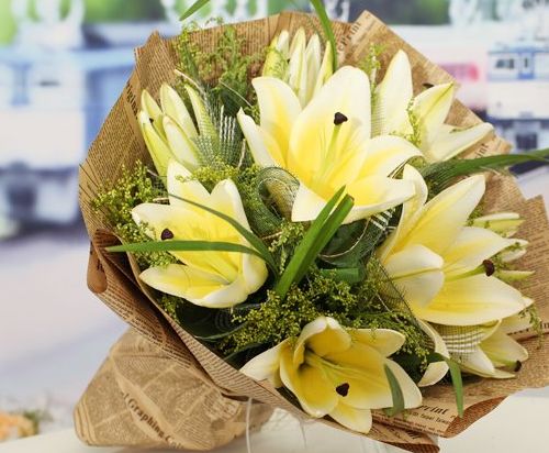 2、花百合也是一个选择,百合在大部分人心中都是祝福婚姻百年好合的,所以特别适合在结婚纪念日送给对方,尤其是白色的百合,象征着纯洁无暇也可以表示对丈夫的事业的一种支持,也可以表示对未来双方的婚姻一路充满阳光生活多姿多彩,但是对于这两种花有选择困难的话,可以两者搭配来弄一整个花束,比如像11朵玫瑰搭配不同的颜色,再加两三只百合,看起来不会单调,颜色丰富,还非常漂亮。