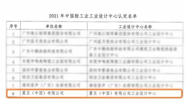 中国轻工业联合会根据《中国轻工业工业设计中心认定管理办法(试行)》等文件要求,经相关行业协会推荐、专家评审及中国轻工联官网公示等工作程序,认定震旦等19个单位为2021年中国轻工业设计中心。