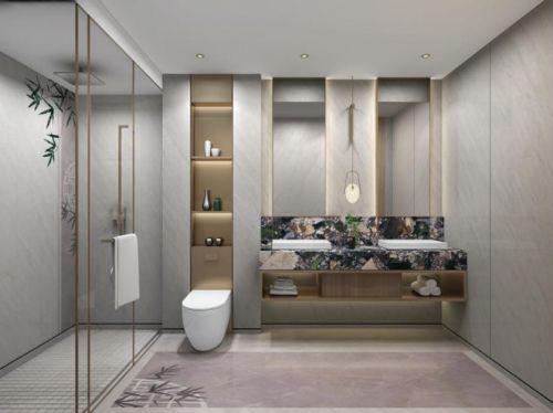 新中式卫生间装修同样注重细节的把握和处理,以及其它一些装饰元素的搭配,譬如将将简一大理石瓷砖菲拉格慕系列应用于卫生间装修,再搭配上金属装饰元素,同时辅以简一大理石瓷砖的四级绿洲加以点缀,地面同步采用藕粉绿竹等元素的瓷砖,又别有一番韵味在其中,虽然是中式装修却不会显得陈旧或厚重,反而越发让人感到轻松适舒适。