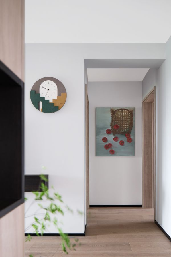 为了让刚装修好的新家显得不那么冷清,设计师还亲自买来鲜花进行布置。并且邀请画家好友将家中原本的菜篮画成了一幅《“柿”事如意》,挂在客厅的墙面上,既保留了老人曾经的生活气息,又寄托着自己对这一家人的美好祝愿。