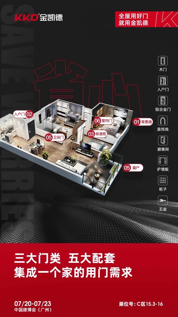 2021年7月20日—23日,在中国建博会(广州)C区15.3—16展位,金凯德门正敞开着,等待每一位消费者和经销商走进,共同拥抱未来,开创更多精彩!