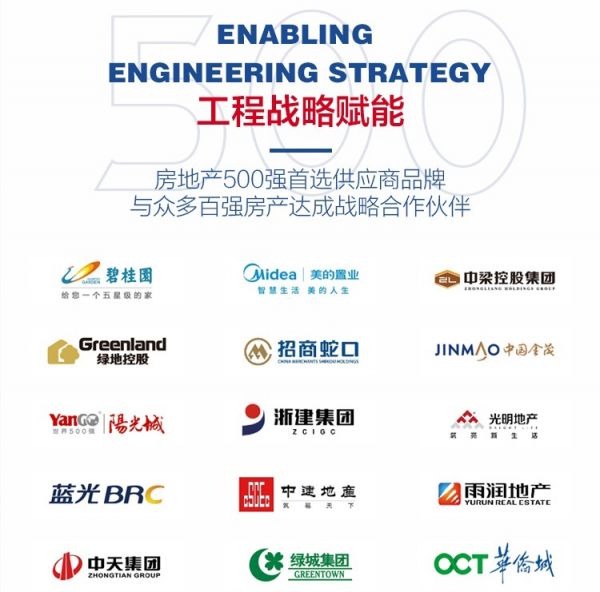面对越来越旺盛的精装修市场需求,金凯德迅速做出反应,以工程战略赋能,与众多百强房地产公司达成合作关系,包括碧桂园、美的置业、中梁控股、绿地控股、招商蛇口、中国金茂、阳光城、浙建集团、光明地产、蓝光、中建地产、雨润地产、中天集团、绿城集团、华侨城等。