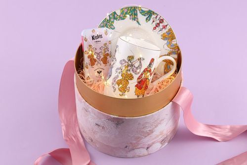 本次“天方夜谭”联名合作新品有俄皇经典钴蓝礼盒装和神秘圆盒种礼盒包装,于天猫限量发售300个。俄皇联名的KisKis “天方夜谭” 糖果7月一上市即在薇娅直播间销售火爆。礼盒经典沉稳的深蓝色包装,彰显典雅现代姿态与格调。礼盒内部的三层设计则充满内敛的惊喜。上两层为“天方夜谭”骨瓷杯与茶碟,异域风情图案萦绕茶具,为雅致贯入新灵感。下层是精致KISKIS糖盒设计,翩翩起舞的异域舞者在舞姿间流露出神秘典雅的气质,体现艺术的纯粹与韵味,在细微之处诉说着传奇工匠精神。