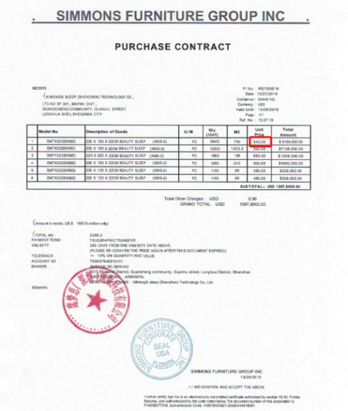 2020年4月21日,应美国国内企业Brooklyn Bedding、Corsicana Mattress Company、Elite Comfort Solutions, FXI, Inc.等于2020年3月31日提交的申请,对进口自中国的席梦思、梦百合、慕思、喜临门等床垫企业发起反补贴立案调查。美国打压中国企业进行出口反补贴加税97.78%,