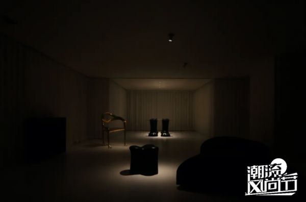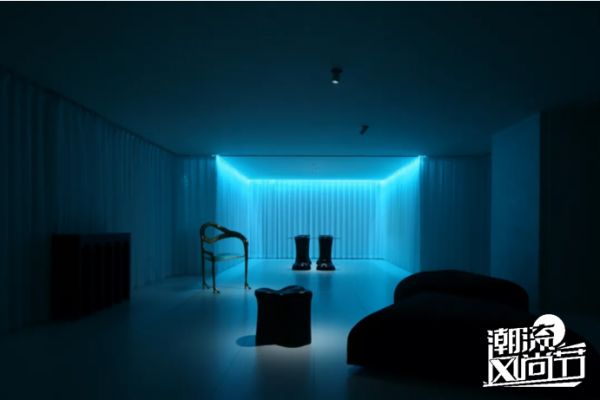 空间中家具的摆放位置为诺大的留白空间增添了戏剧性,特别是那把只有三只脚的金属椅,仿佛在欣赏超现实主义大师达利的绘画,给人留下深刻的印象。多种颜色灯光的运用营造出变幻莫测的氛围,投射在纱帘上的光束或装饰中的漫反射,让整个空间氤氲出一丝奇异,如同一个神秘而又魔幻的沉浸式艺术舞台,主人则是这里永远的主角。