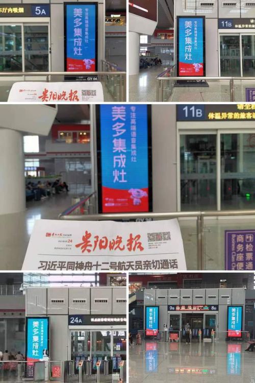 贵阳北站是集铁路、地铁、公交等多种交通方式于一体的综合交通枢纽,也是贵州省及西南地区主要的客运集散中心。美多集成灶常年霸屏贵阳北站广告,主要分布在贵阳北站候车室、检票口等人流量密集的重点位置,抢占显眼核心资源,为贵州省及西南地区经销商提供强大的品牌支持。