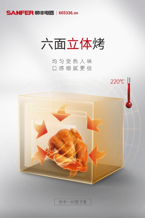二,独创“六面空气加压烤”技术,美味与健康双享。