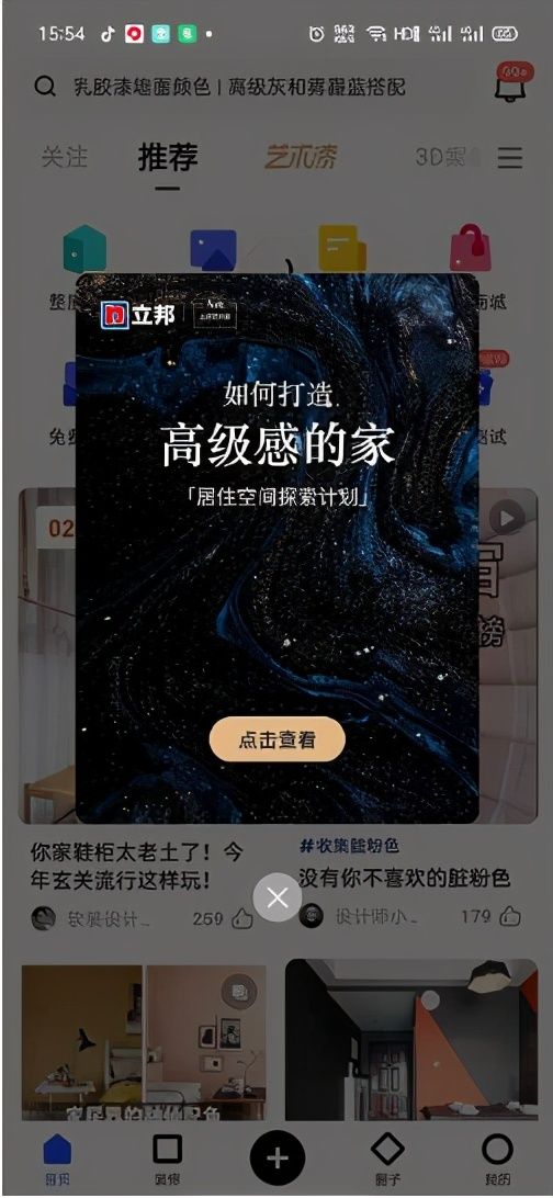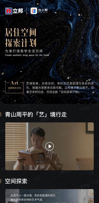 艺术与生活相通,青山周平的艺术解读、家装达人的上手实操,都直观、立体地增强了用户对立邦艺术漆的感知。为了进一步建立用户对立邦艺术漆更全面的认知和了解,住小帮也为“居住空间探索计划”特别打造了活动专题页和品牌话题,持续沉淀大咖视频、达人墙面改造案例、种草文章等核心内容,占据用户对艺术漆的第一印象。