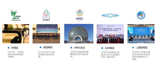早在1999年,月星就入驻“世界三大家具展”之一的美国高点国际家具博览会,成为首个入驻的中国企业。此后,凭借专业的团队、精湛的工艺和出众的品质,月星家具先后成为世博会、上海亚信峰会、APEC会议、进博会等国际盛会指定家具供应商。