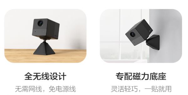 值得一提的是,BC2打破了萤石在摄像机上一贯使用的白色外观设计,银黑色小方块外形搭配金字塔形底座,几何碰撞,小巧可爱,专配双向磁吸底座,轻松固定安装。全无线+随心贴的设计,让BC2有了更多用武之地,可以随心摆放在玄关客厅,或是用于童房的婴幼儿看护,甚至能成为摆摊“神器”。