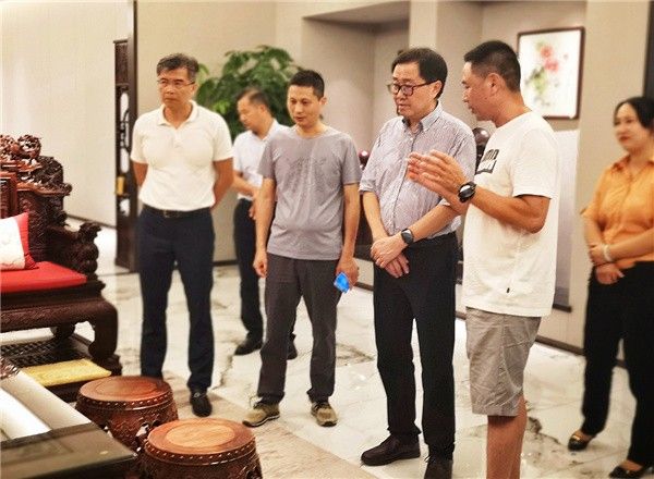 2021年7月5日,中山市人大常委会副主任关瑞麟,中山市人大常委会委员、教科文卫外侨工委主任邝伟东一行,莅临广东非遗(大涌红木家具传统雕刻技艺)传承基地——红古轩视察工作,对红古轩弘扬传统雕刻技艺给予高度的肯定,并对红古轩提出了建议。中山市人大常委会领导、市人大代表、市文化广电旅游局领导随行,中山市大涌镇人大主席林雅科、大涌镇党委委员丘淑琴和大涌镇政府相关工作人员迎检。