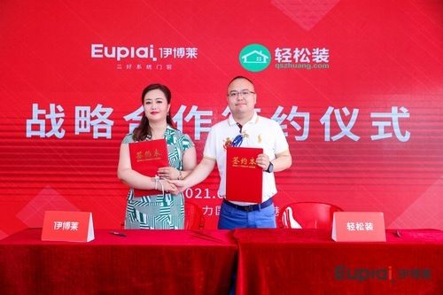 除了献上自己的祝福,在活动现场,轻松装联合创始人沈岳,腾讯家居&优居总编辑、优居研究院院长张永志,中视蓝海董事长程学军先后与伊博莱签订战略合作,携手前行,共同掘金千亿门窗蓝海。