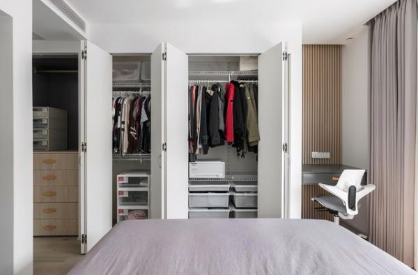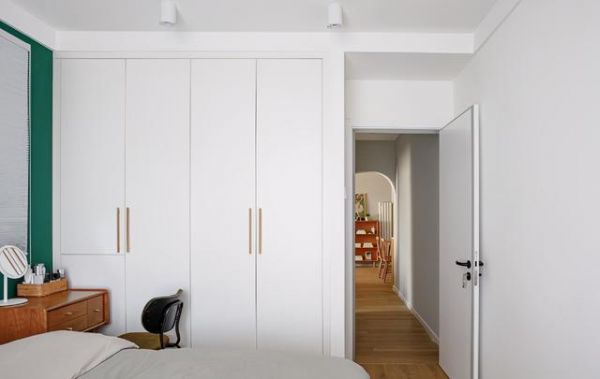 如果卧室的空间充足,衣柜柜门就选择推拉门,虽然推拉门、折叠门等都很好看,但是对五金的质量都要求非常高,还容易受损。