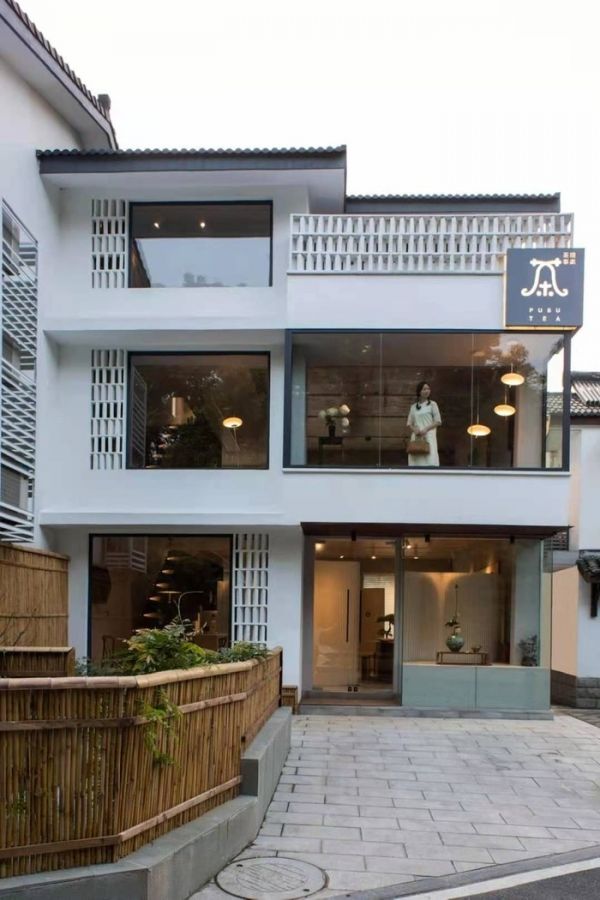 三层小楼,前后有小院,茶事空间所用均为璞素原创家具作品:线条的简洁疏朗,凝练自天然山水的简而意足;家具的气韵斐然,遥遥呼应杭城的温润文隽。于含蓄端秀中见风雅,于舒适自乐中得灵动,亦与茶的精神相称。