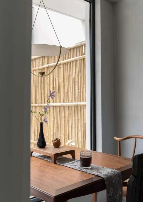 空间设计亦取“山居”之意,用极简的设计手法,舍去一切不必要之装饰,将整个茶事空间化为安静恬淡的底色,静故了群动,空故纳万境,用最开敞的姿态迎接悠然入室的自然生机。幽居多卉木,满目望云山,饮茶时怀抱山居之趣。