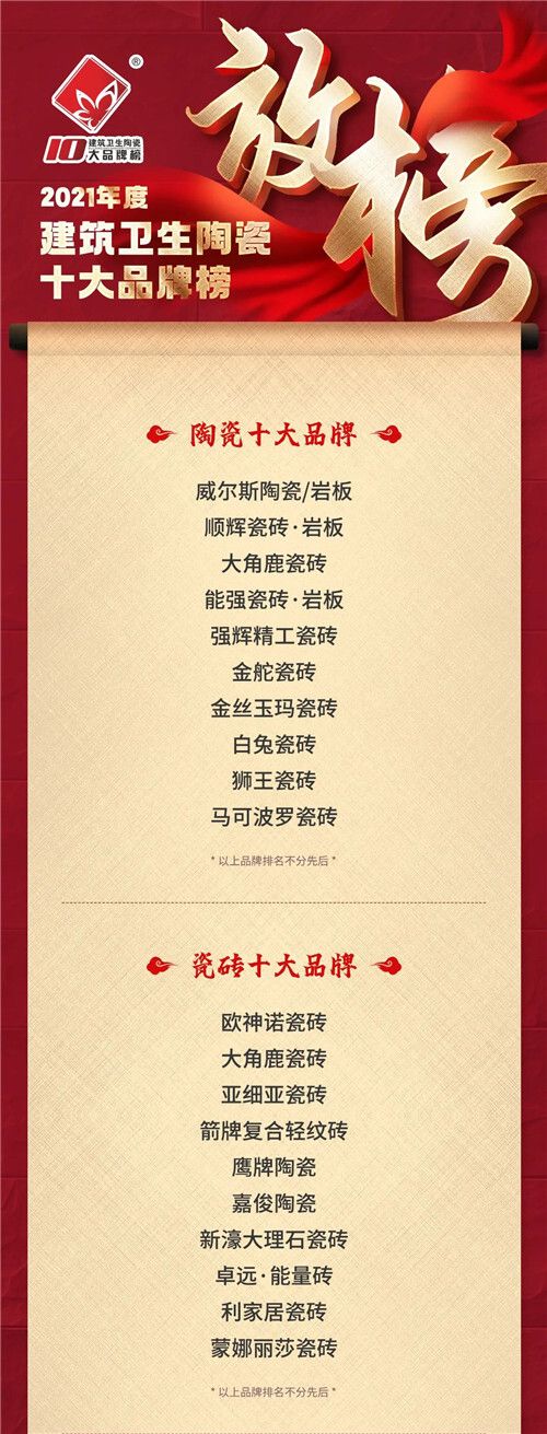 重磅!2021建筑卫生陶瓷十大品牌榜线上隆重发布