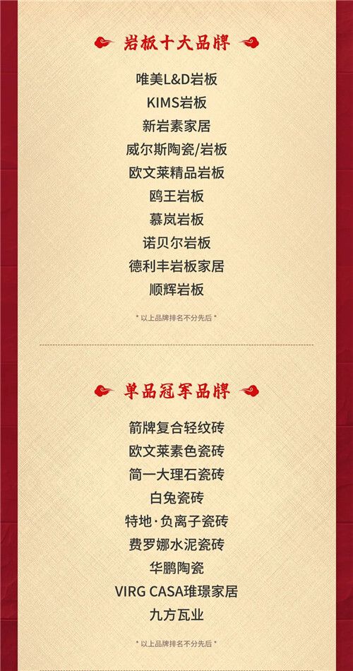 7月10日,2021年度“建筑卫生陶瓷十大品牌榜”以线上发布的形式隆重放榜,“陶瓷十大品牌”“瓷砖十大品牌”“陶瓷一线品牌”“卫浴十大品牌”等15大奖项以线上发布的形式新鲜出炉(详见下面的荣誉榜)。