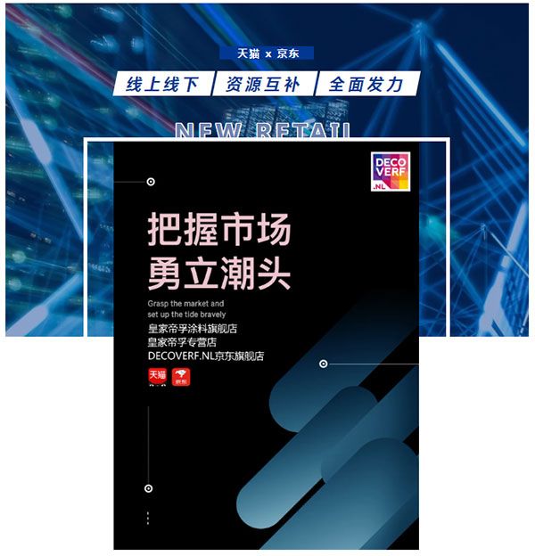 天猫皇家帝孚专营店和京东皇家帝孚【DECOVERF.NL旗舰店】的上线以及【皇家帝孚涂料旗舰店】,完善了皇家帝孚新零售营销矩阵,为品牌进一步打开线下市场,提供了强有力的流量支持。