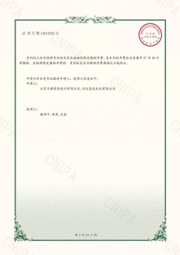 喜报!今朝装饰再获一种【墙体隔音结构】专利!