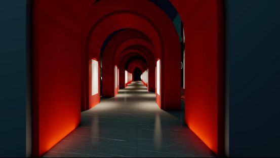 “拱”体现的是形式和体形的完美结合,这种连续弯曲的形式也被很多文明赋予了不朽的意义。直曲,再舒展、延伸,再缩小。这些体块被不规则的墙体半围合式地包裹,墙体在不经意间的转向,和每一个空间都产生对话。镜面与空间的虚实交融让空间的体验感更加的立体。不同的视角产生不同的感知,给予空间更多的可能性,让走进空间中的人形成自己的想象世界。