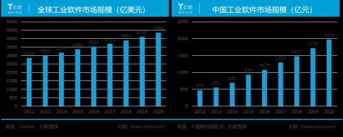 根据相关行业数据,全球工业软件市场规模在2020年已达到4358亿美元,对比之下,我国工业软件2020年市场规模为1974亿元,只占全球市场规模的7%左右。