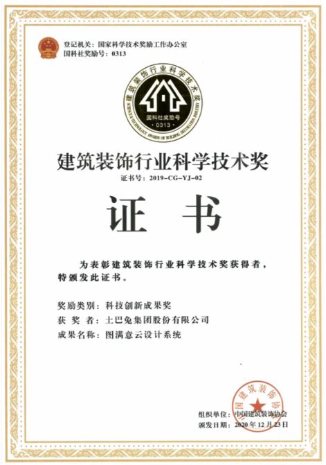 在去年,土巴兔凭借自身实力,顺利入选商务部首批“数字商务企业”名单、多次入选胡润独角兽榜单。土巴兔图满意云设计系统凭借卓越的科技创新能力以及对建筑装饰行业技术进步的推动作用,荣获国家级“2019~2020年度科技创新成果奖”,实力多次获得国家和行业认可。