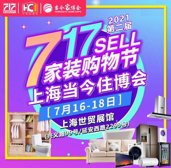 “717家装购物节”活动时间:2021年7月16-18日。会展地址:上海世贸展馆(延安西路2299号/兴义路99号)。索票热线:400-820-9961